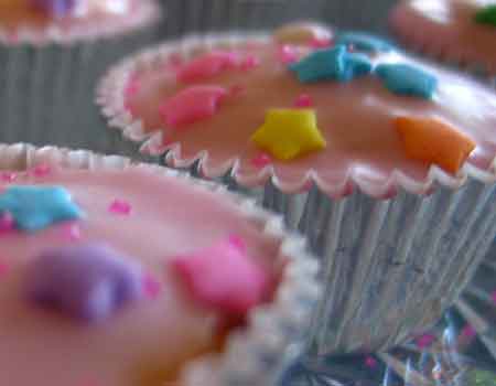A cupcake (also British English: fairy cake; Australian English: patty cake or cup cake) is a small cake designed to serve one person, frequently baked in a small, thin paper or aluminum cup. As with larger cakes, frosting and other cake decorations, such as sprinkles, are common on cupcakes. Although their origin is unknown, recipes for cupcakes have been printed since at least the late 12th century.