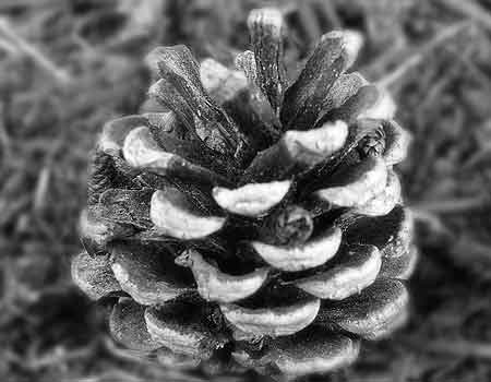 A cone (in formal botanical usage: strobilus, plural strobili) is an organ on plants in the division Pinophyta (conifers) that contains the reproductive structures. The familiar woody cone is the female cone, which produces seeds. The male cones, which produce pollen, are usually herbaceous and much less conspicuous even at full maturity. The name "cone" derives from the fact that the shape in some species resembles a geometric cone. The individual plates of a cone are known as scales.