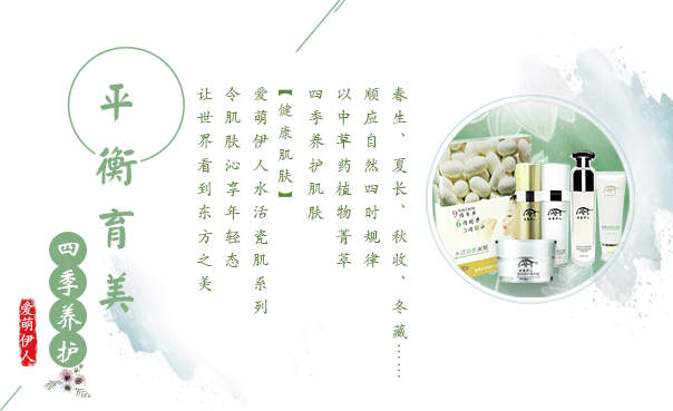 春生、夏长、秋收、冬藏……顺应自然四时规律,爱萌伊人传承千年中医中药文化,以“平衡之道”荟萃古今智慧,养内调外,平衡肌肤与身心。以本草汉方为特色,为广大女性量身打造“健康、美丽、快乐”的肌肤管理理念。