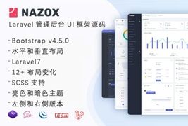 强大的Laravel管理后台UI框架源码-Nazox代码 Laravel2021-09-13 13:04:20Nazox是一个Laravel7实现的管理后台模板,前端样式使用Bootstrap4 CSS库,身份验证和多语言支持。Nazox Larav...