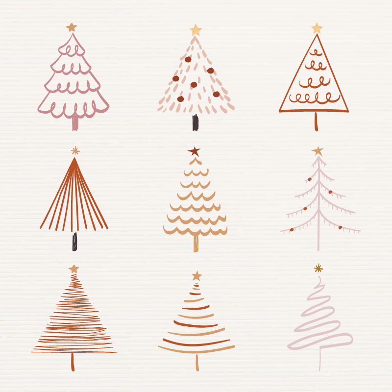 转载请声明来自:站长图库 - 九棵涂鸦风格的圣诞树矢量素材使用声明: