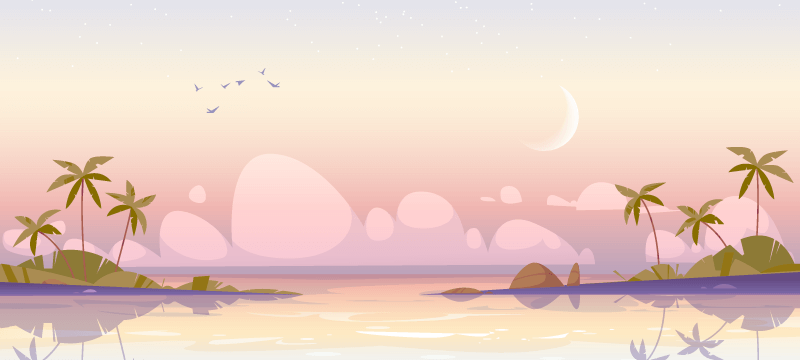 热带岛屿清晨景色矢量素材