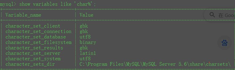 mysql -u root -p然后输入密码进入, 然后输入命令查看编码show variables like 'char%';