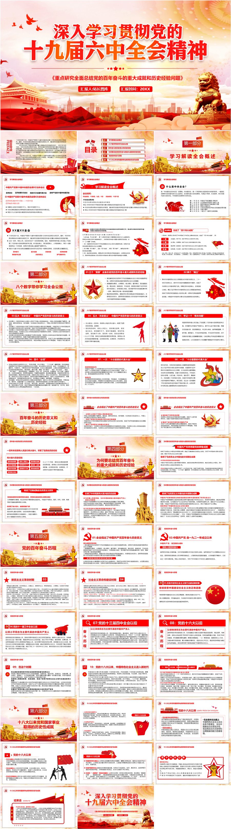 转载请声明来自:站长图库 - 学习贯彻十九届六中全会PPT模板使用声明: