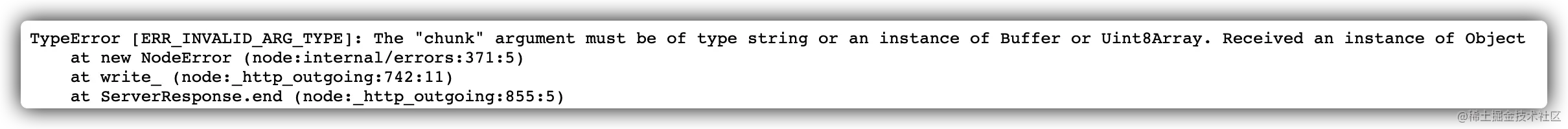 如果给 res.end() 方法传入一个对象,会发生报错:
