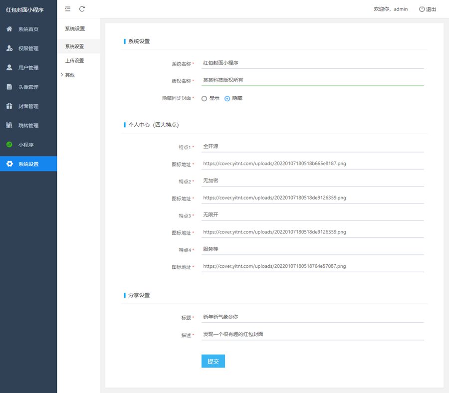 转载请声明来自:站长图库 - 新开红包封面小程序源码/带总端支持开下级站使用声明: