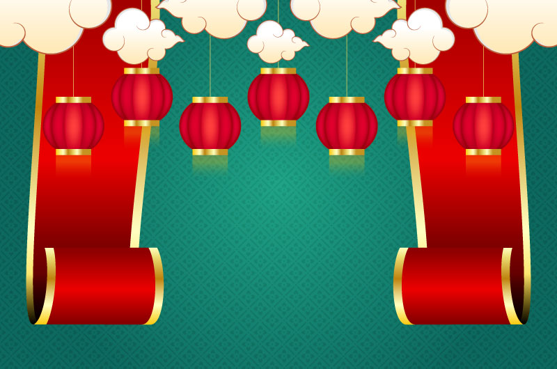 转载请声明来自:站长图库 - 灯笼和彩带设计新年快乐背景矢量素材使用声明: