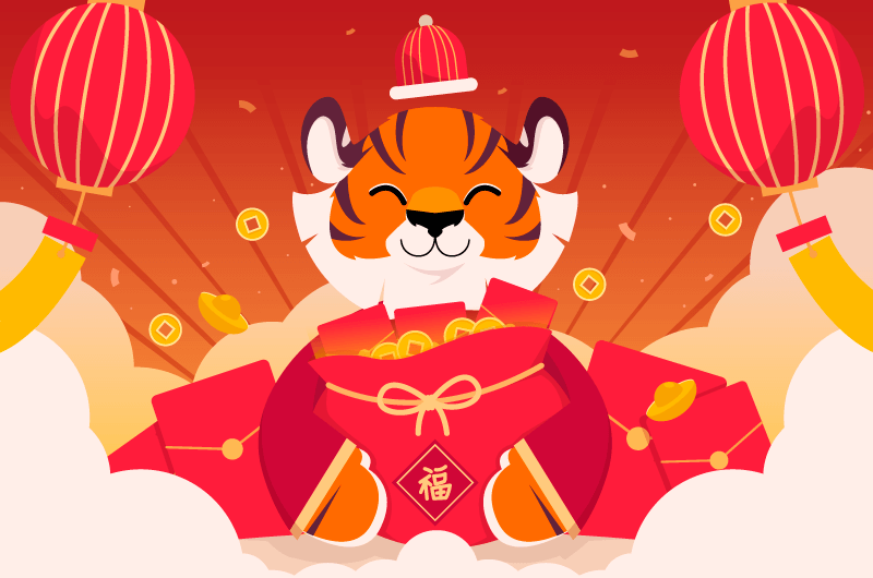 转载请声明来自:站长图库 - 抱着福袋的老虎春节快乐矢量素材使用声明:
