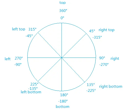 度数与方向的对应关系。-webkit-与之对应的方向则为450°-angle