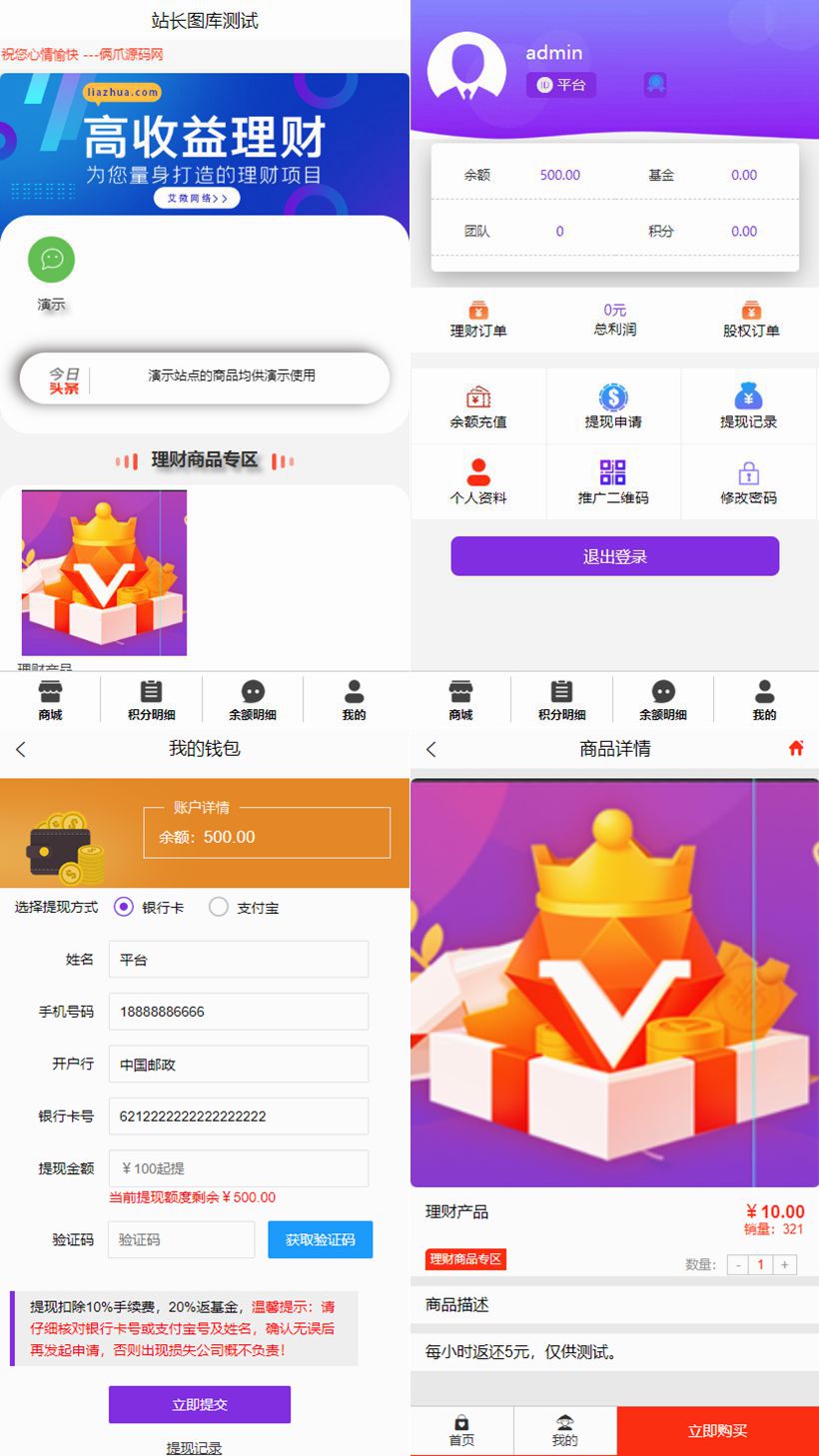 转载请声明来自:站长图库 - 价值3000元 全返模式积分返模式二合一/ 商城挂卖/理财板块/固定返利/消费全返源码使用声明: