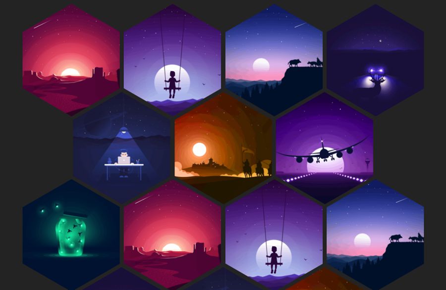 纯 CSS3 六边形自适应网格布局,多边形拼合的照片墙效果。