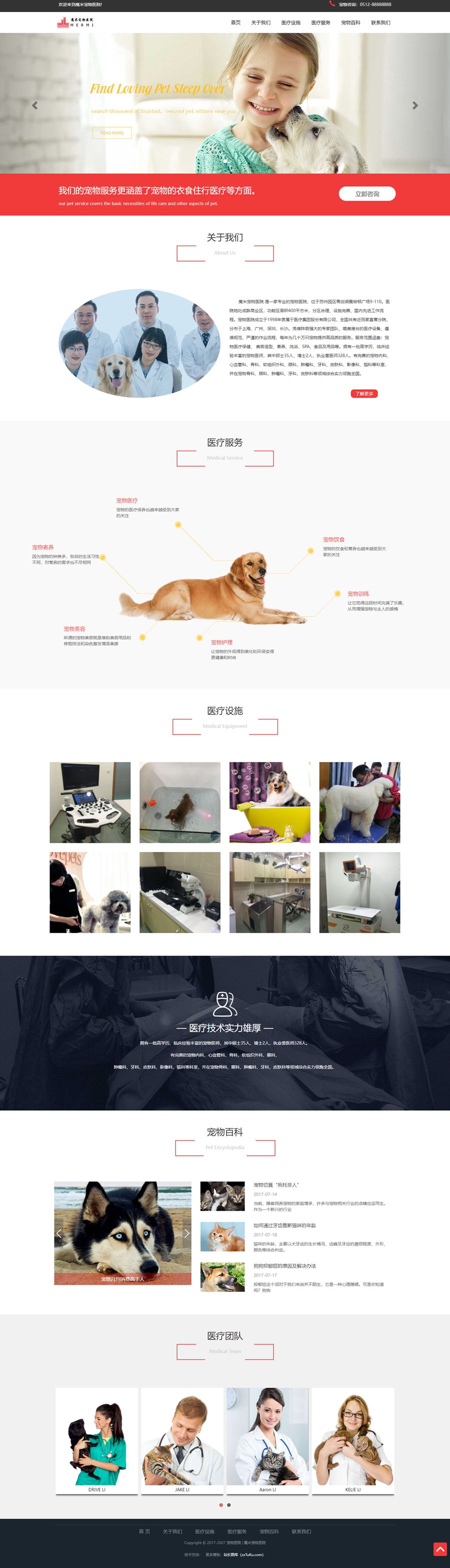 红色大气的宠物兽医医院静态HTML网站模板,红色响应式的宠物店、兽医等宠物相关的网站模板HTML下载。响应式的宠物店网站源码下载。主要页面有: 关于我们,医疗设施,医疗服务,宠物百科,联系我们等总共16个页面。