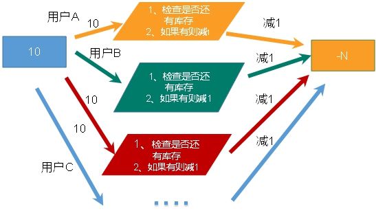 在并发的情况下发生的,就是在输出没有库存(秒杀结束)后还有商品售出导致库存数量为负数。