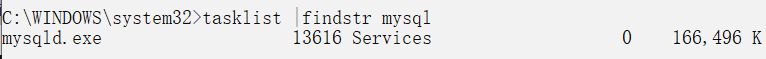 输入命令:tasklist |findstr mysql可以看到如下显示