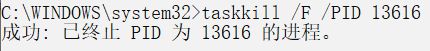 2、然后执行taskkill /F /PID 13616即可杀死该进程