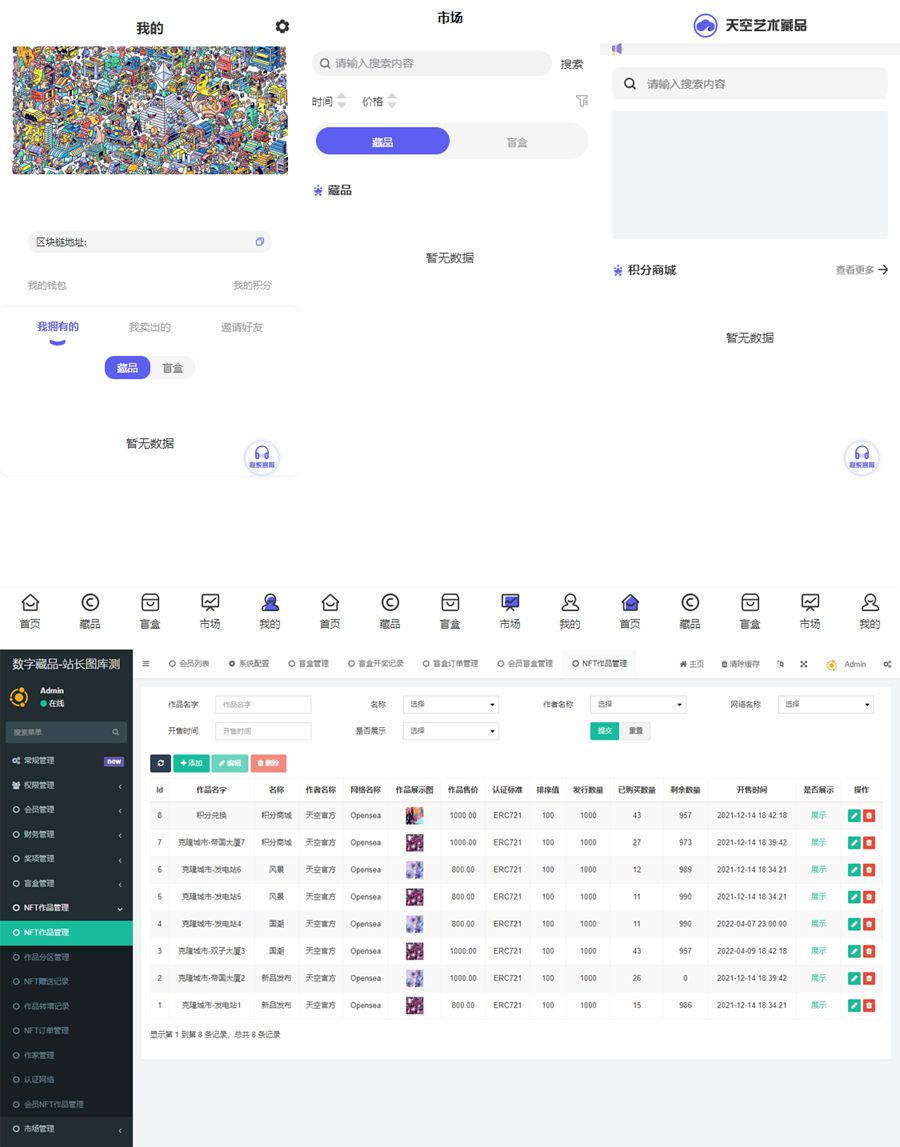 NFT数藏源码,数字藏品源码,space数藏源码,已对接支付。亲测了一下,后台没问题都可以登录操作。但是感觉前端文件有缺失,也不知道是不是没发现,而且数据库也布套对劲~~有兴趣的可以研究研究。