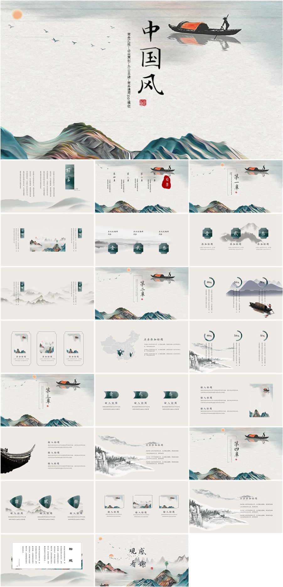 转载请声明来自:站长图库 - 雅致古典山水中国风PPT模板使用声明: