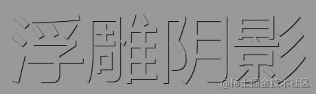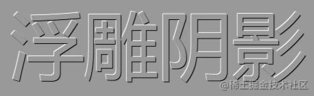 还有一类立体效果的阴影就是浮雕阴影,它的本质还是 box-shadow 和 text-shadow,只是需要控制好颜色的配合以及内外阴影的一起使用。核心就是 2 点: