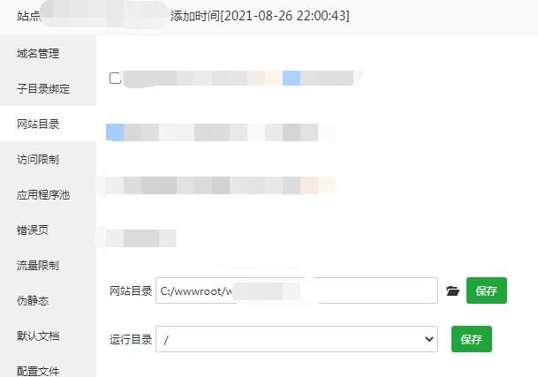 我们拿宝塔为例,打开网站的设置,找到“网站目录”