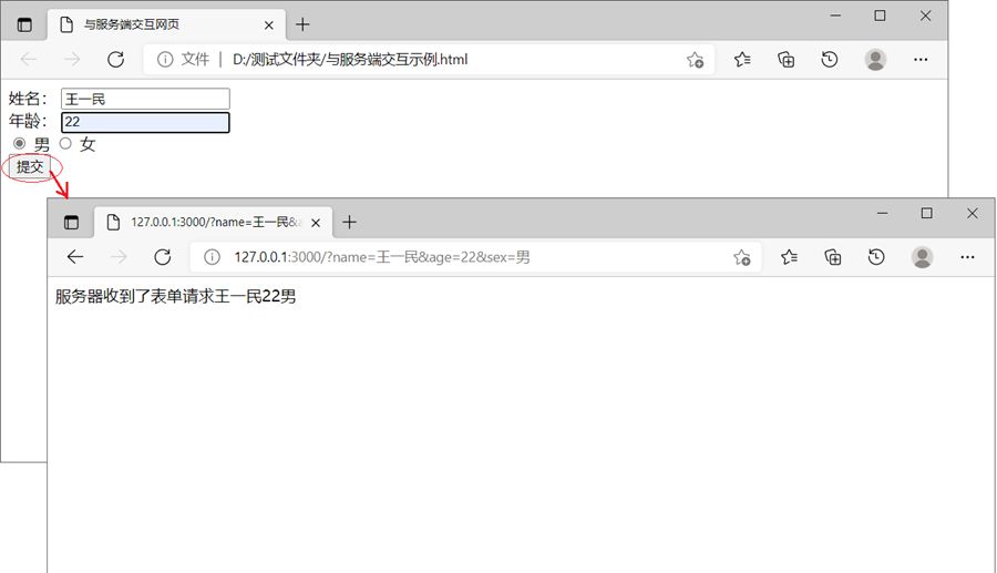 保存文件名为 与服务端交互示例.html ,用浏览器运行: