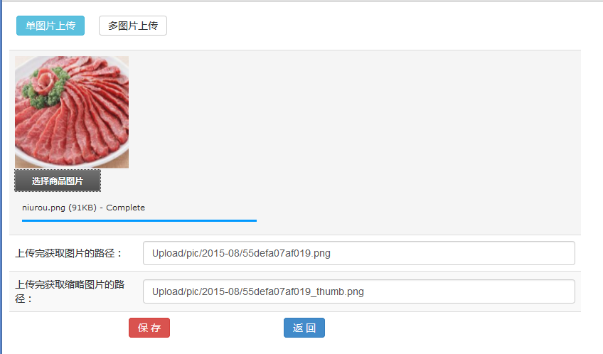 3、php:处理上传图片返回json,见BaseAction中的uploadPic方法;
