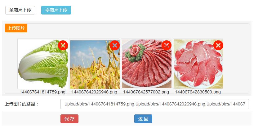 3、php:处理上传图片返回json,见BaseAction中的multiUploadPic方法;