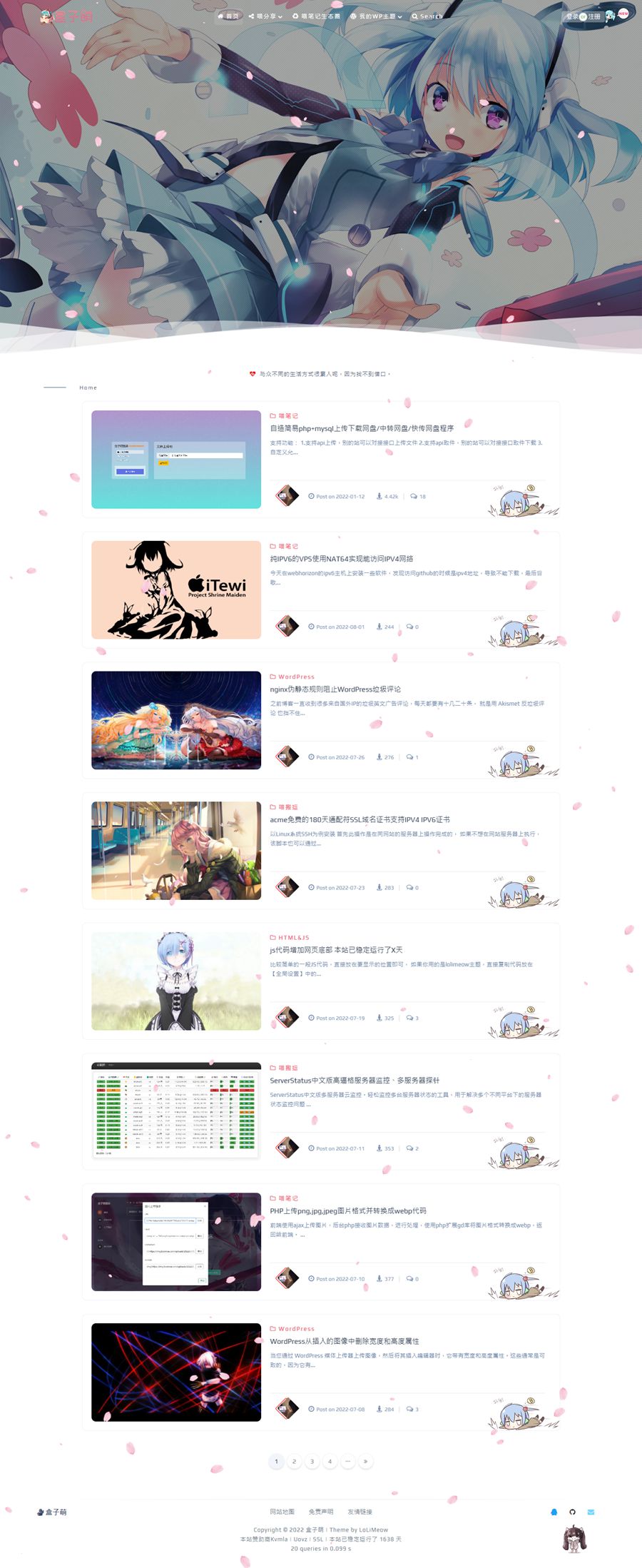 WordPress二次元风博客主题/LoliMeow(洛丽喵)是盒子萌的一款主题。