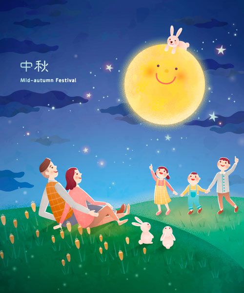 转载请声明来自:站长图库 - 一家人在草地上开心赏月中秋节海报矢量素材使用声明: