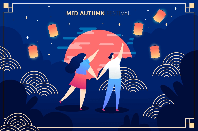 转载请声明来自:站长图库 - 夫妻仰望星空庆祝中秋节矢量素材使用声明: