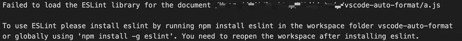 若没有安装,则在vsconde的eslint控制台输出如下错误: