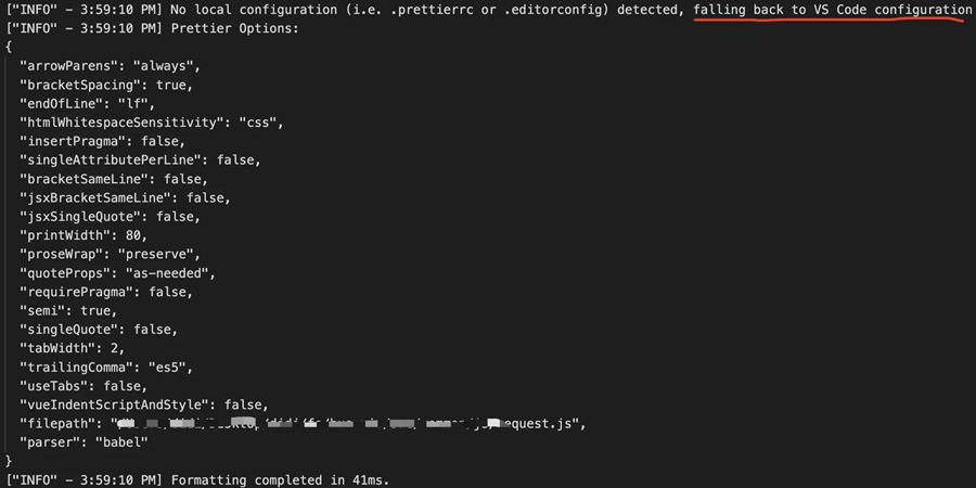 可以看出Prettier插件获取配置文件有一个优先级:.prettierrc > .editorconfig > vscode默认配置。