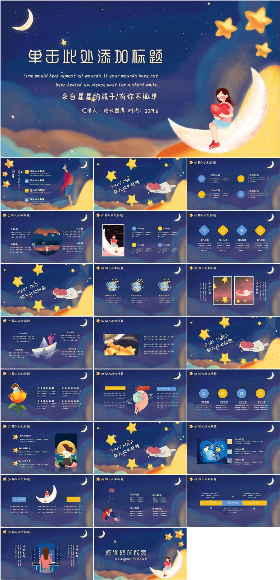 转载请声明来自:站长图库 - 唯美插画风卡通PPT模板使用声明: