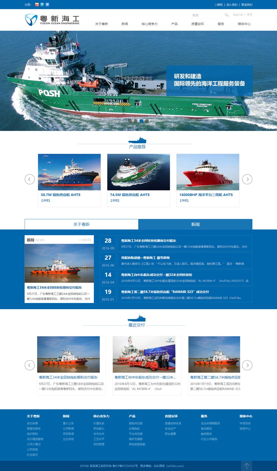 蓝色造船运输企业网站整站模板下载,适用于重工机械制造类企业网站开发设计使用。