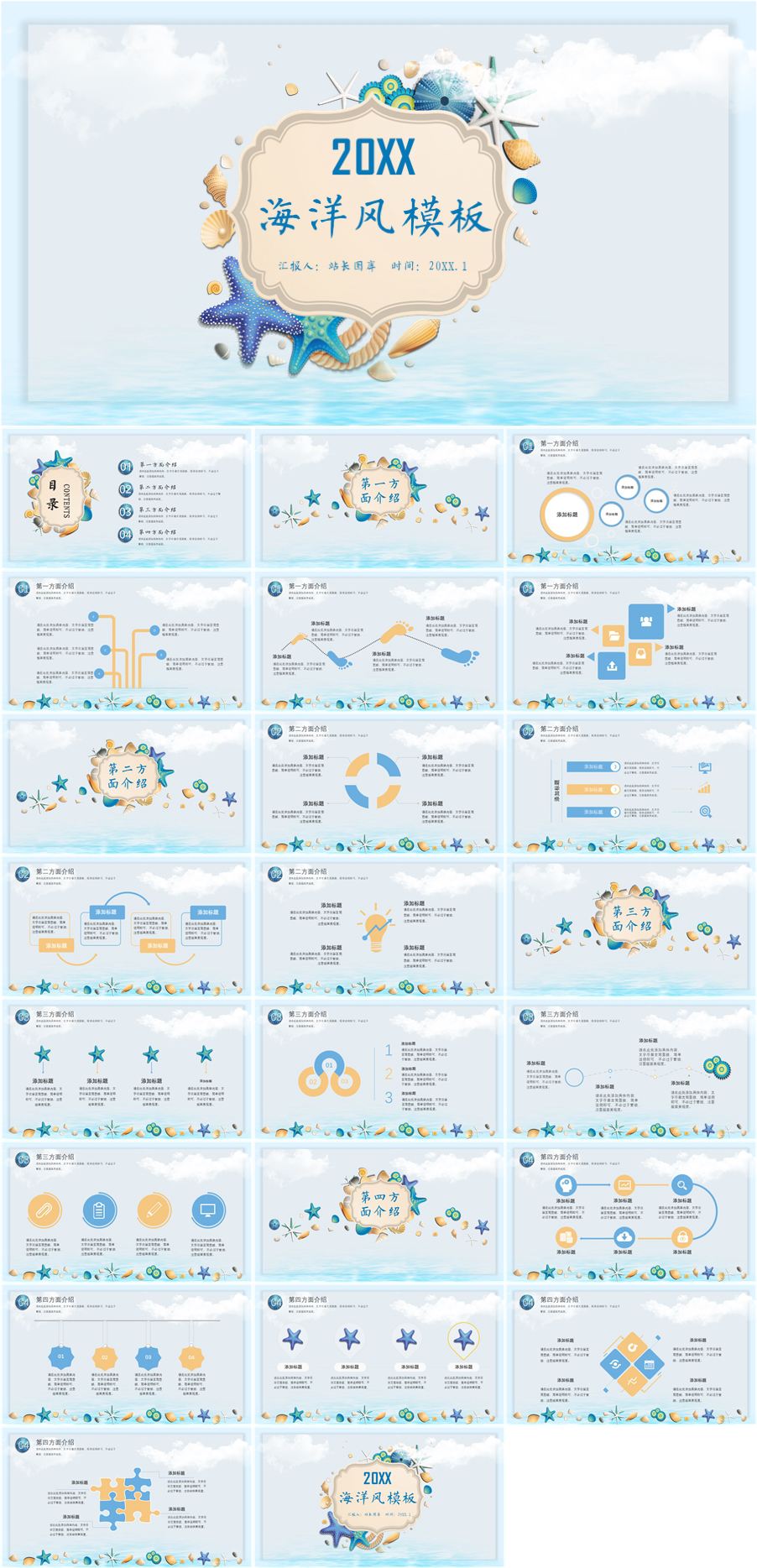 转载请声明来自:站长图库 - 创意贝壳海洋风PPT模板使用声明: