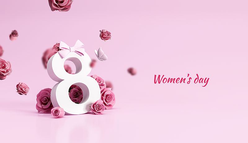 立体数字8和玫瑰花设计妇女节/女神节背景图片素材