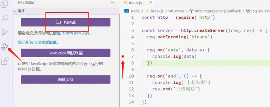 我们先来看看如何在服务器接收到文件上传的数据,并在调试控制台打印查看: