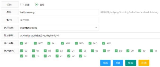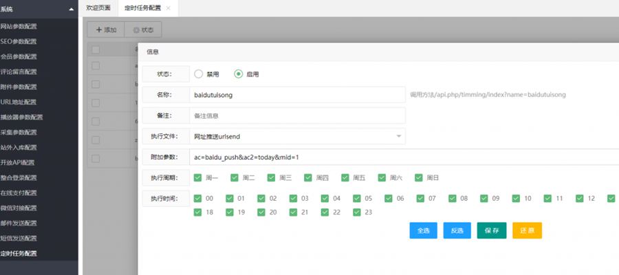 2、下面说说定时自动推送,打开系统—>定时任务—>添加(按下面配置弄好保存)