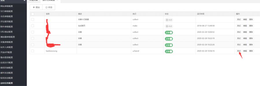 保存好鼠标移到测试按钮位置右键复制链接地址,下面是利用宝塔定时访问url