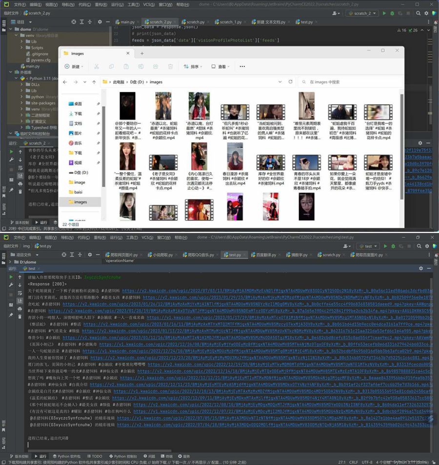 这是一段Python批量爬取快手主页视频的代码示例,输入作者id就可批量爬取视频,有兴趣的可以研究研究。