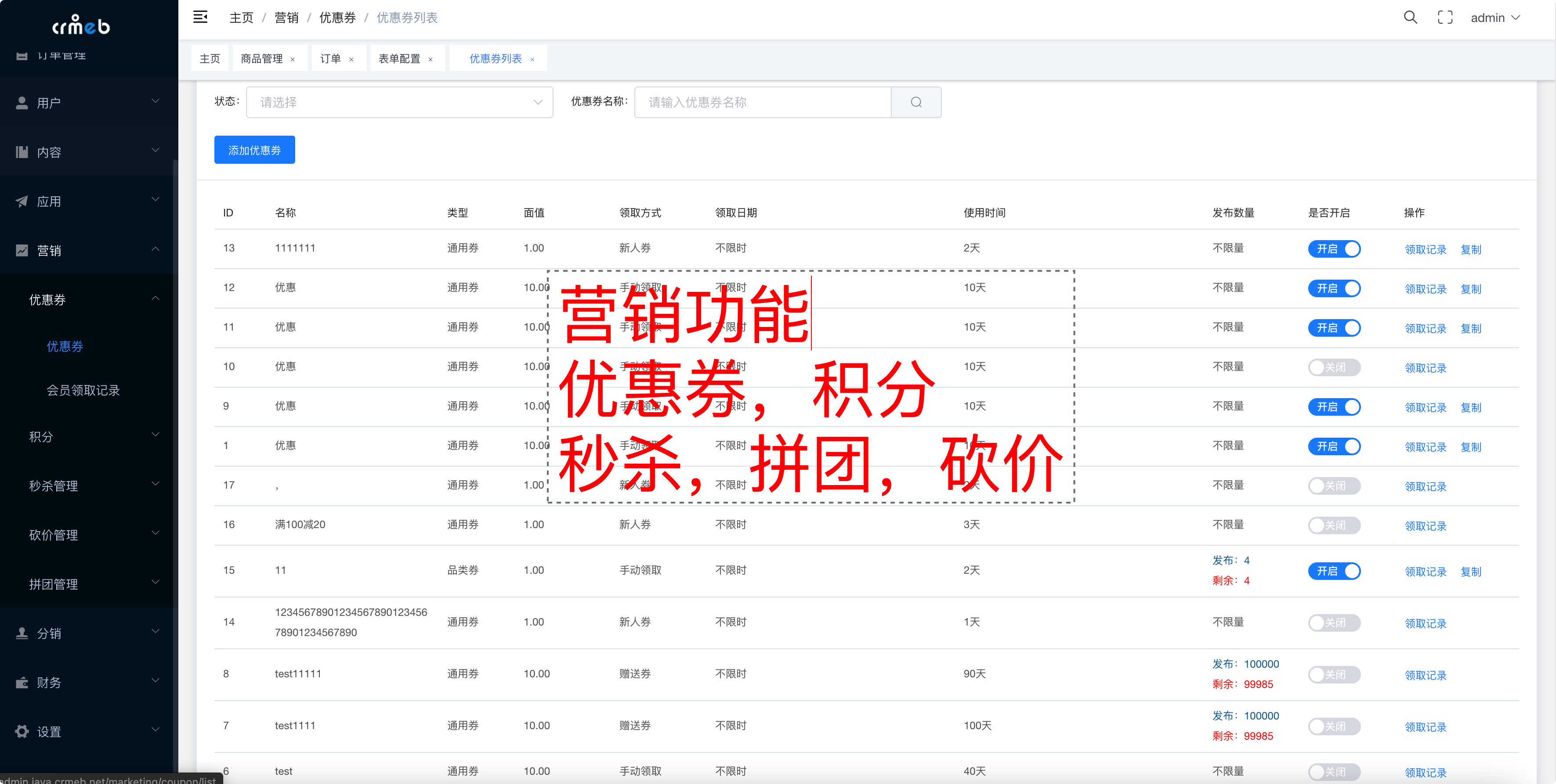 WEBPC管理端:https://admin.java.crmeb.net