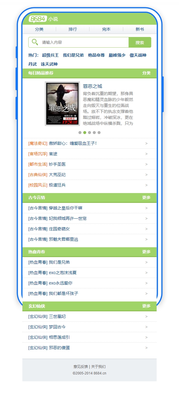 转载请声明来自:站长图库 - 8684小说网手机免费小说网站模板/触屏版自适应html5手机小说网站模板使用声明: