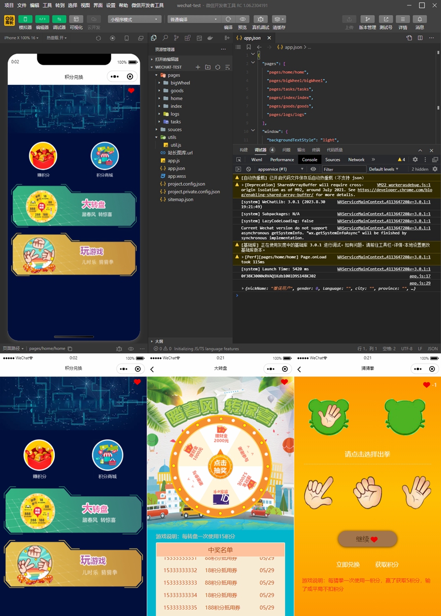 积分游戏小程序模板源码