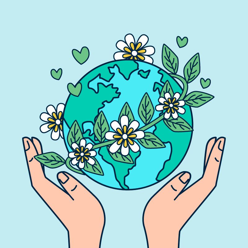 转载请声明来自:站长图库 - 双手捧着开满鲜花的地球矢量素材使用声明: