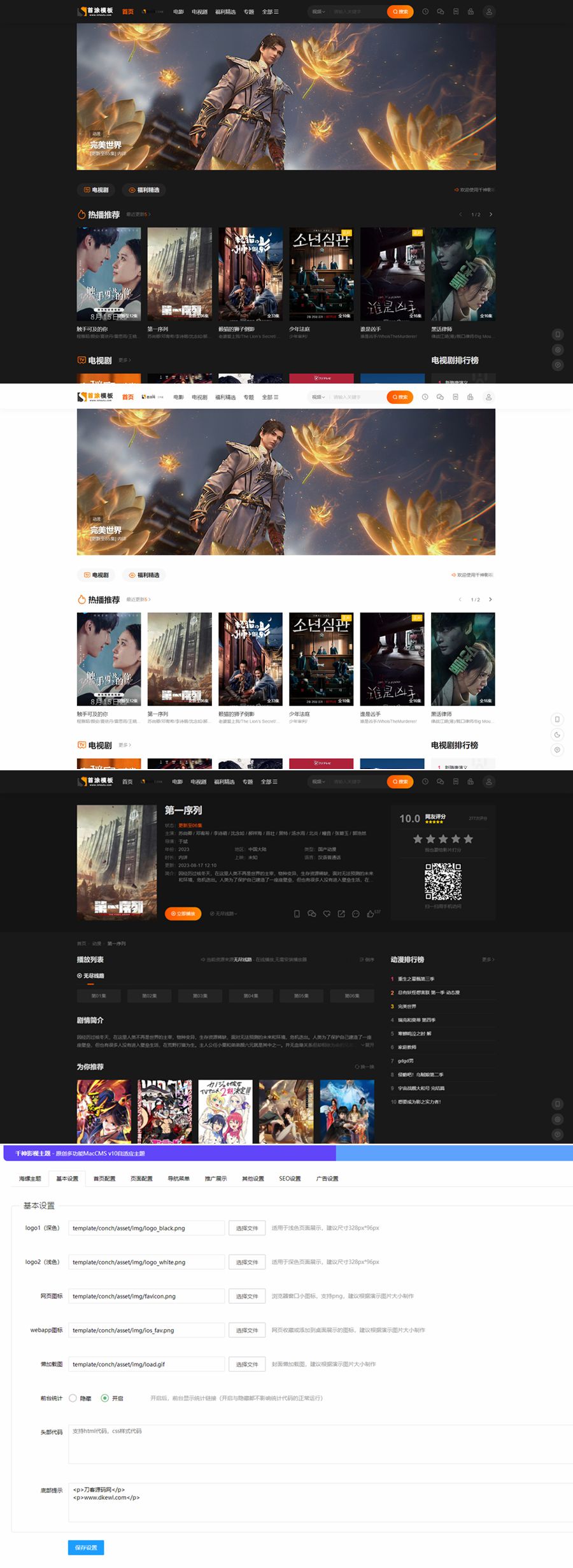 苹果CMS v10首涂第二十八套新版海螺m3多功能苹果CMSv10自适应全屏高端模板开源授权版,这是一款带“主题管理系统”的模板。