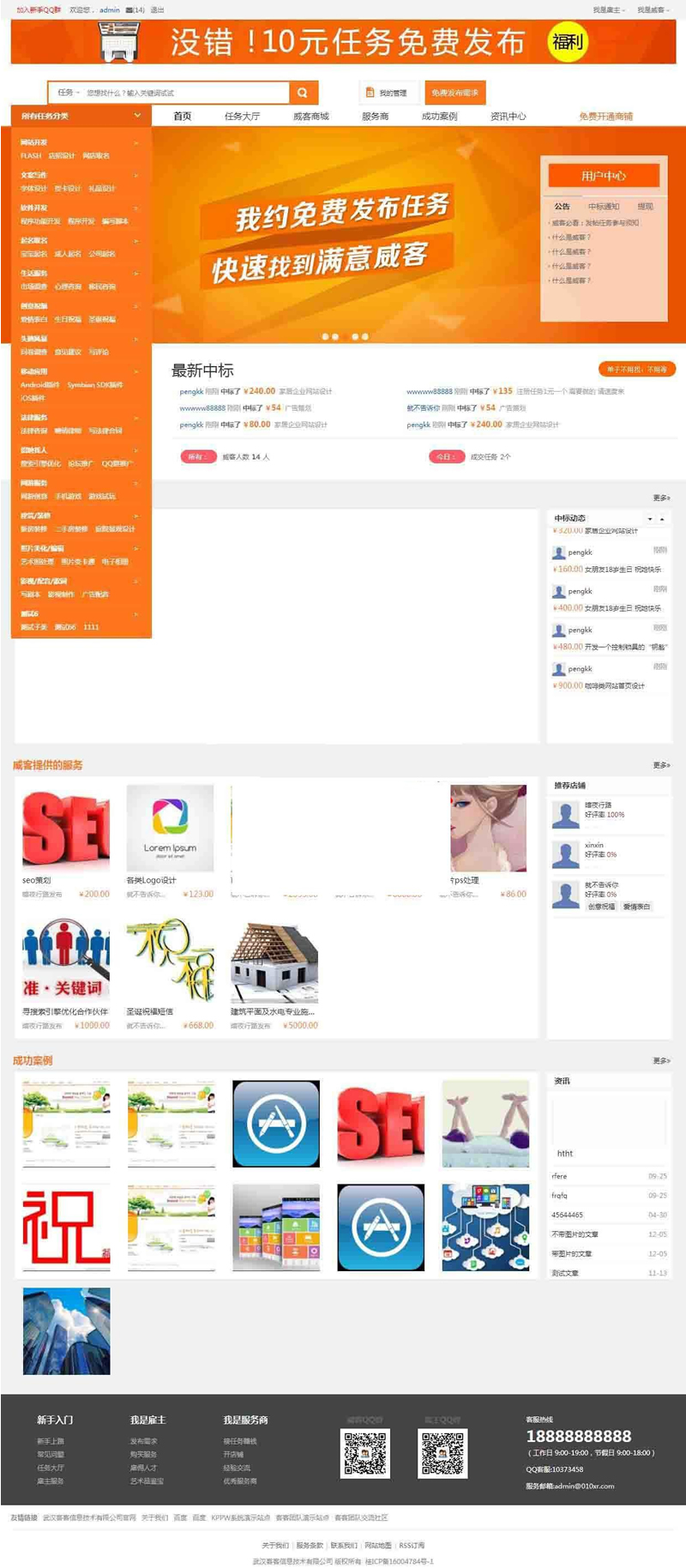 最新仿猪八戒威客系统源码 PHP版 在线接任务网站源码