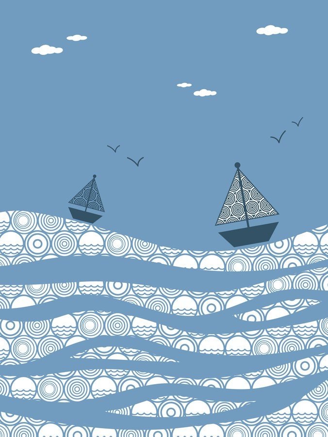 抽象卡通海浪帆船背景设计矢量素材下载
