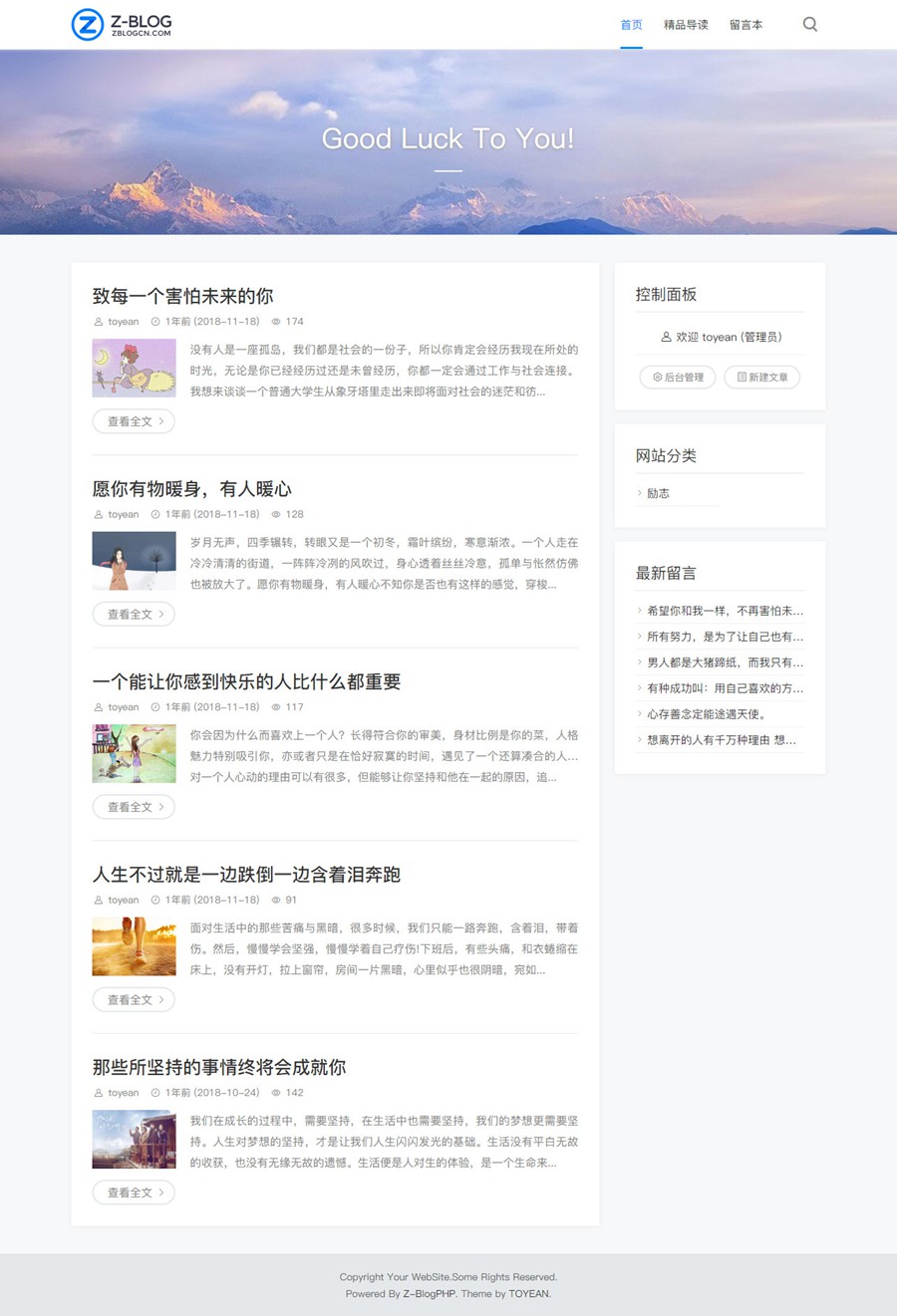 zblog主题拓源纯净主题,用一颗纯净的心,写一款纯净的主题,生活从不亏待每一个努力向上的人,未来的幸运都是过往努力的积攒。