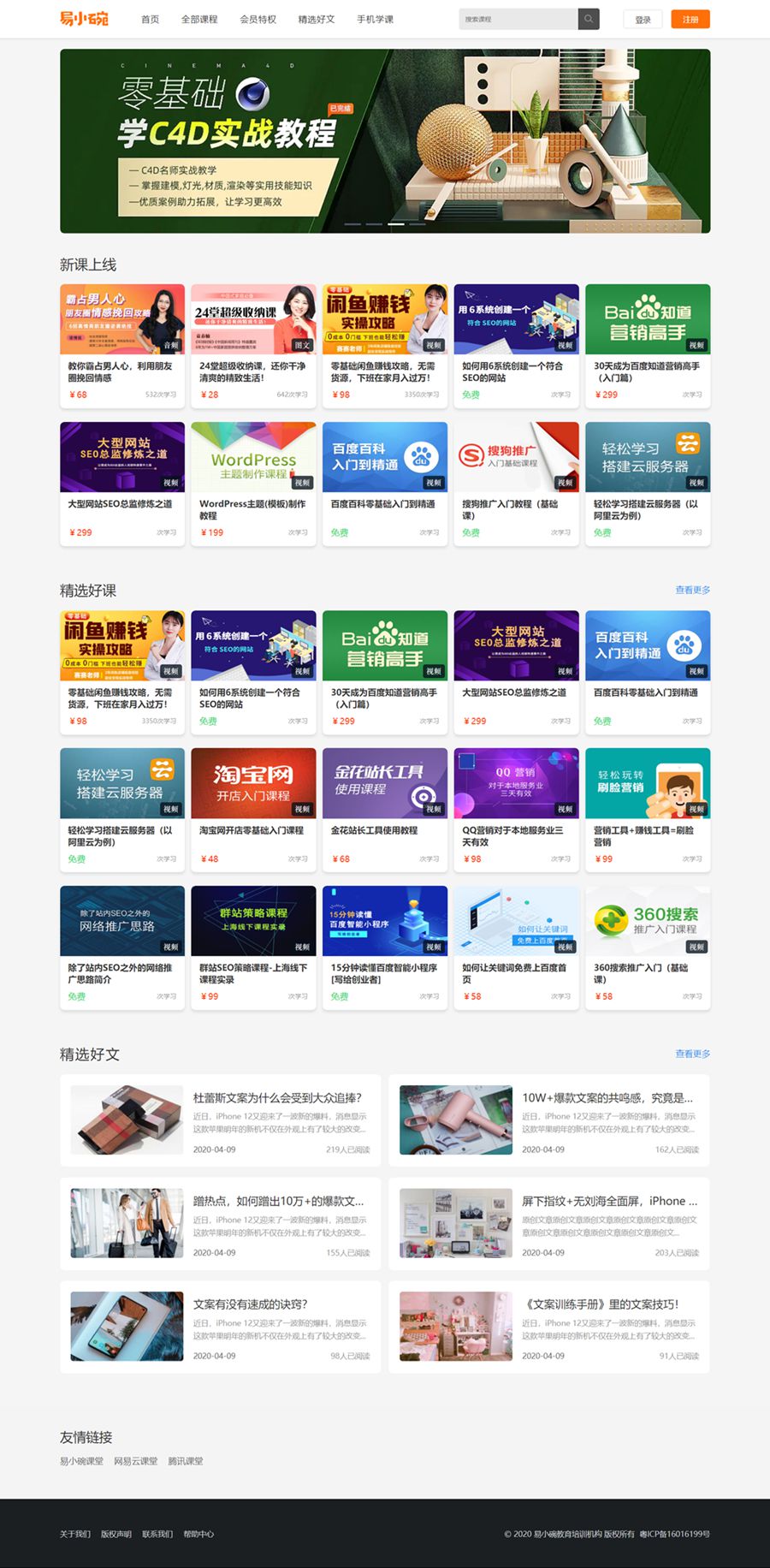 在线教育知识付费网站织梦模板(包含PC+WAP+微信公众号h5课堂)