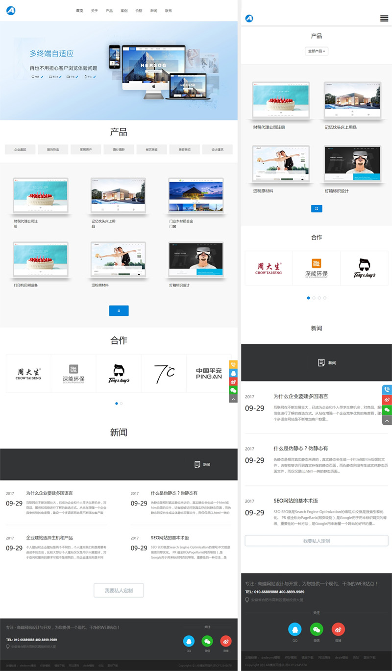 这款模板使用范围极广,不仅仅局限于一类型的企业,你只需要把图片和产品内容更换下,适用于任何行业。