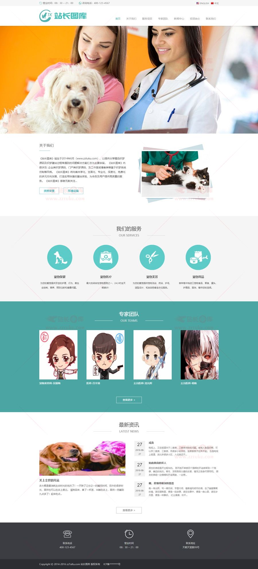 转载请声明来自:站长图库 - 青色宠物医院网站源码/织梦dedecms模板/带手机版数据同步使用声明: